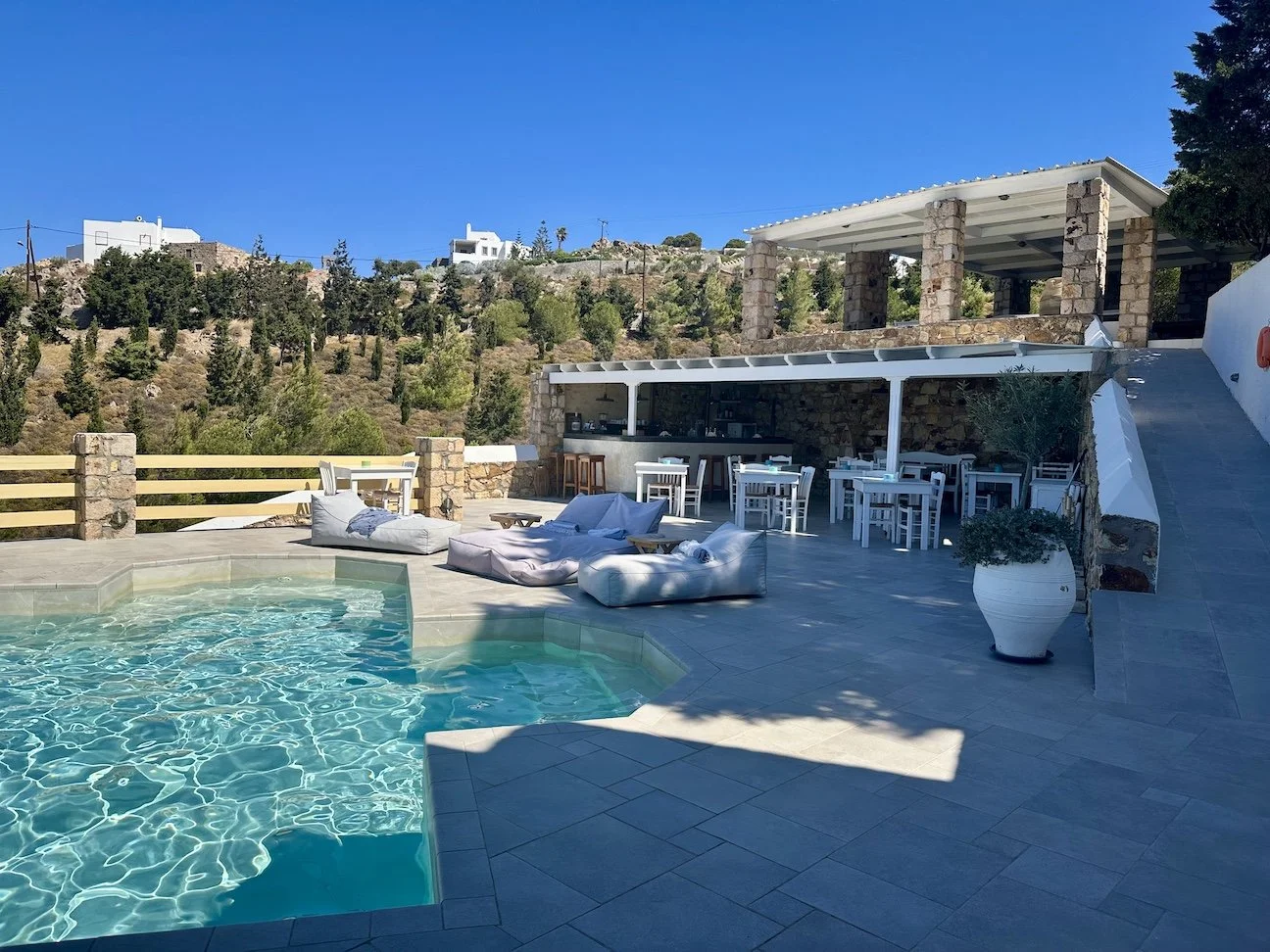 The hotel, 9 Muses, is in the peaceful town of Sapsilla, about 3 km from Skala, the island's center for ferries, shops, and most hotels. You can get to Skala (and explore other areas of the island) by e-bike, scooter/quad, taxi, rental car, public transport, or by long walk (45 minutes). Chora is also a gorgeous city, on the island’s pinnacle, with restaurants, views, and nightlife. There are also sights and a few restaurants nearby, and the town, Grikos is within walking distance of the hotel.